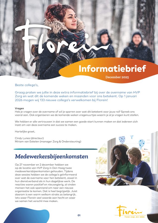 Hoe neem je medewerkers zorgvuldig mee in een overname? Toen Florein een andere zorgaanbieder uit de regio wilde overnemen, was één ding duidelijk: heldere communicatie en persoonlijk contact stonden voorop in lijn met het dna van Florein. Medewerkers wilden weten waar ze aan toe waren – wat verandert er, wat blijft hetzelfde en wat betekent dit voor mijn werk?