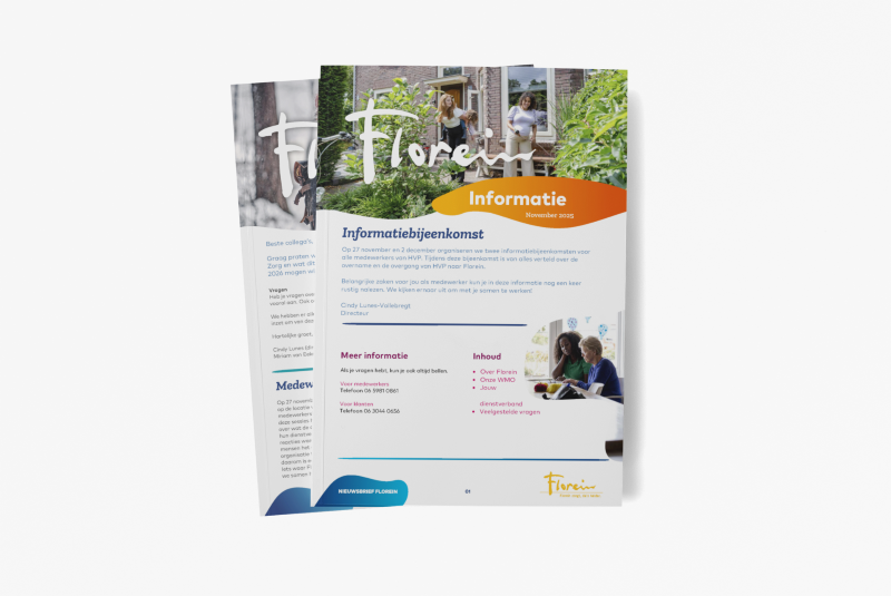 Bij een overname draait alles om zorgvuldigheid. Daarom kozen we voor een heldere communicatiestructuur met een logische opbouw met informatie over ‘Wie is Florein, Wat betekent de overgang concreet voor medewerkers, Hoe blijft het werk zoveel mogelijk vertrouwd en welke vragen leven er nog meer. Deze vragen wilden we goed en transparant beantwoorden.